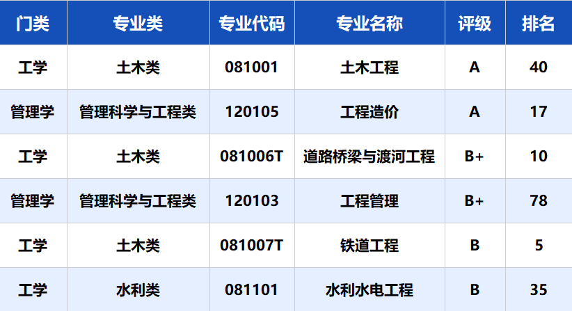土木工程、工程管理、铁道工程、道路桥梁与渡河工程 |