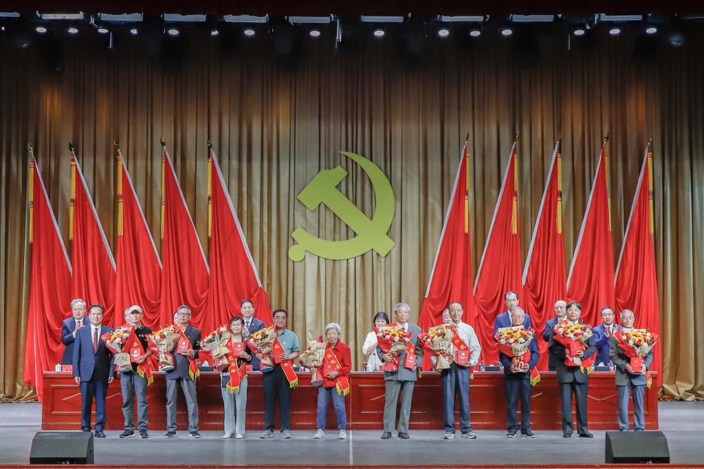图4.校领导为“光荣在党50年”荣誉勋章获得者代表颁奖