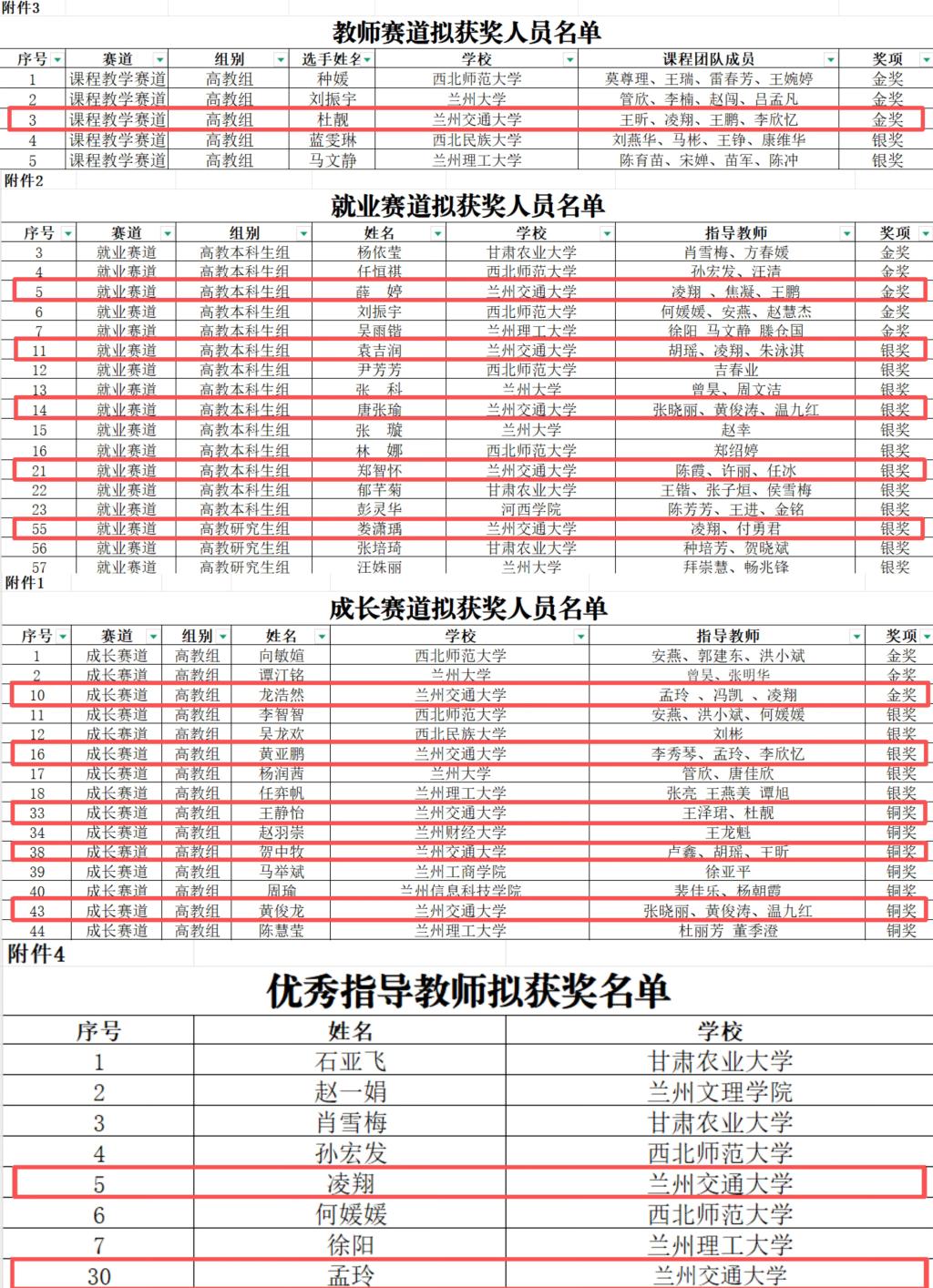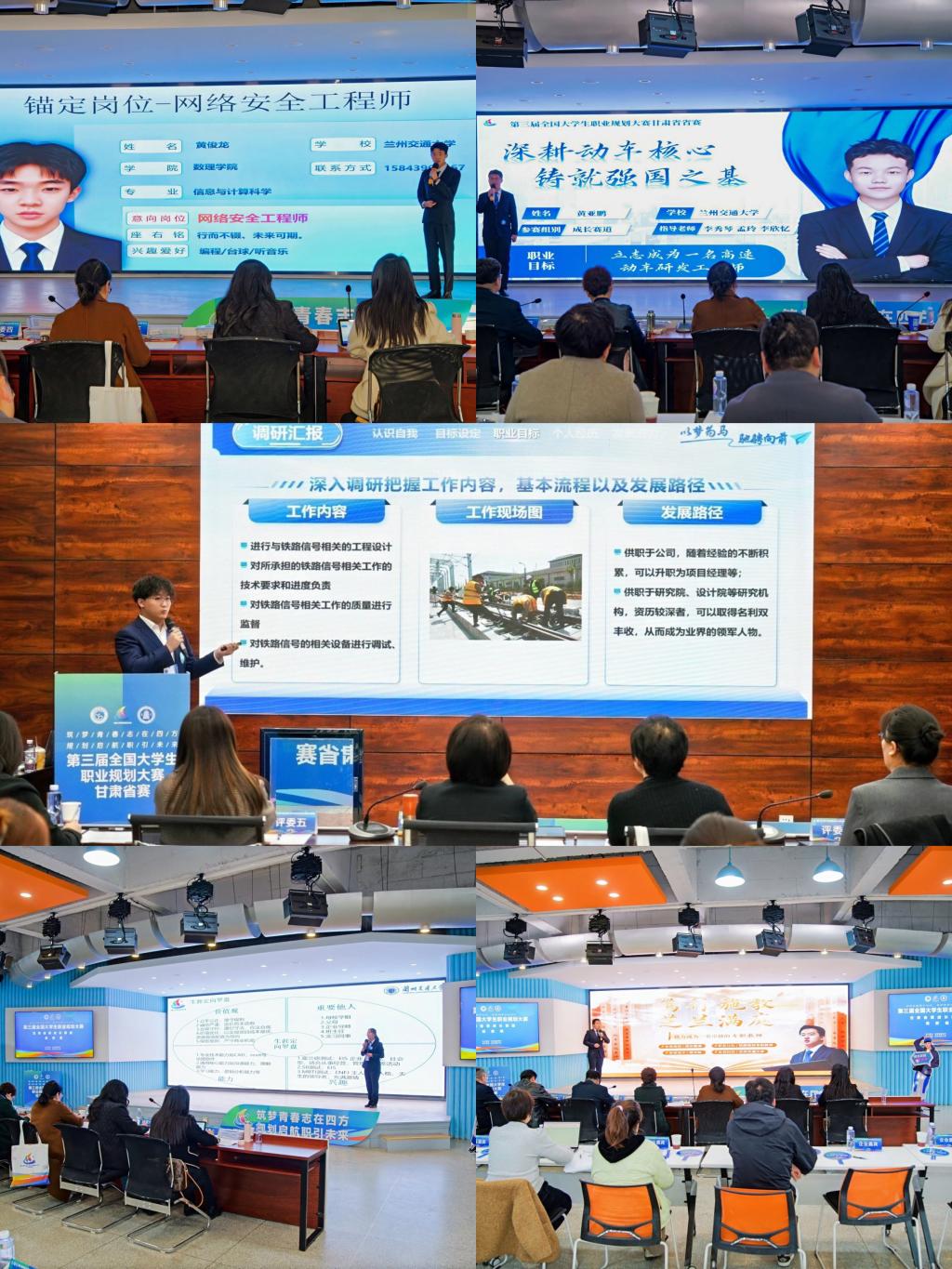 本次大赛由甘肃省教育厅主办,以“筑梦青春 职引未来”为主题,设课程教学、本科生成长、本科生就业、研究生就业四大赛道。大赛自2025年11月启动,吸引了全省48所高校的300余名选手同台竞技。经过省赛的激烈角逐,我校杜靓获(教师)课程教学赛道金奖;龙浩然、薛婷同学分获成长赛道、就业赛道金奖;凌翔、孟玲获评“优秀指导教师”。