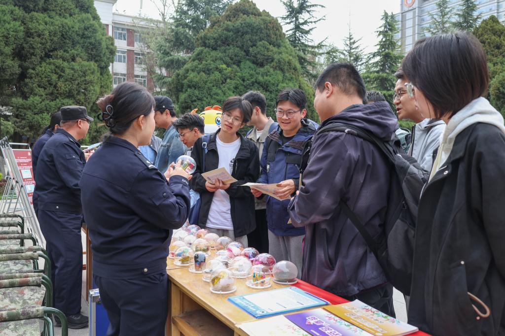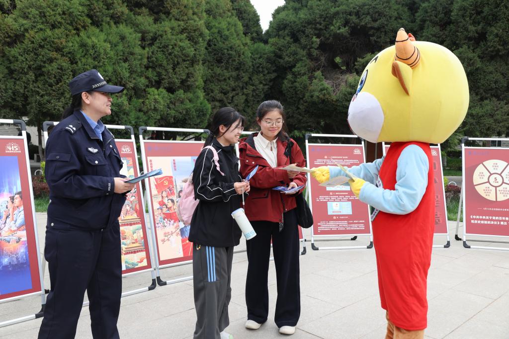 在第十一个全民国家安全教育日到来之际,为深入贯彻总体国家安全观,切实增强师生国家安全意识与国防观念,4月15日,由学生工作部(处)、党委人民武装部联合党委保卫工作部、安宁区禁毒委员会办公室、安宁西路派出所共同主办的“全民国家安全教育日”主题展览在学校图书馆前中心广场举行。